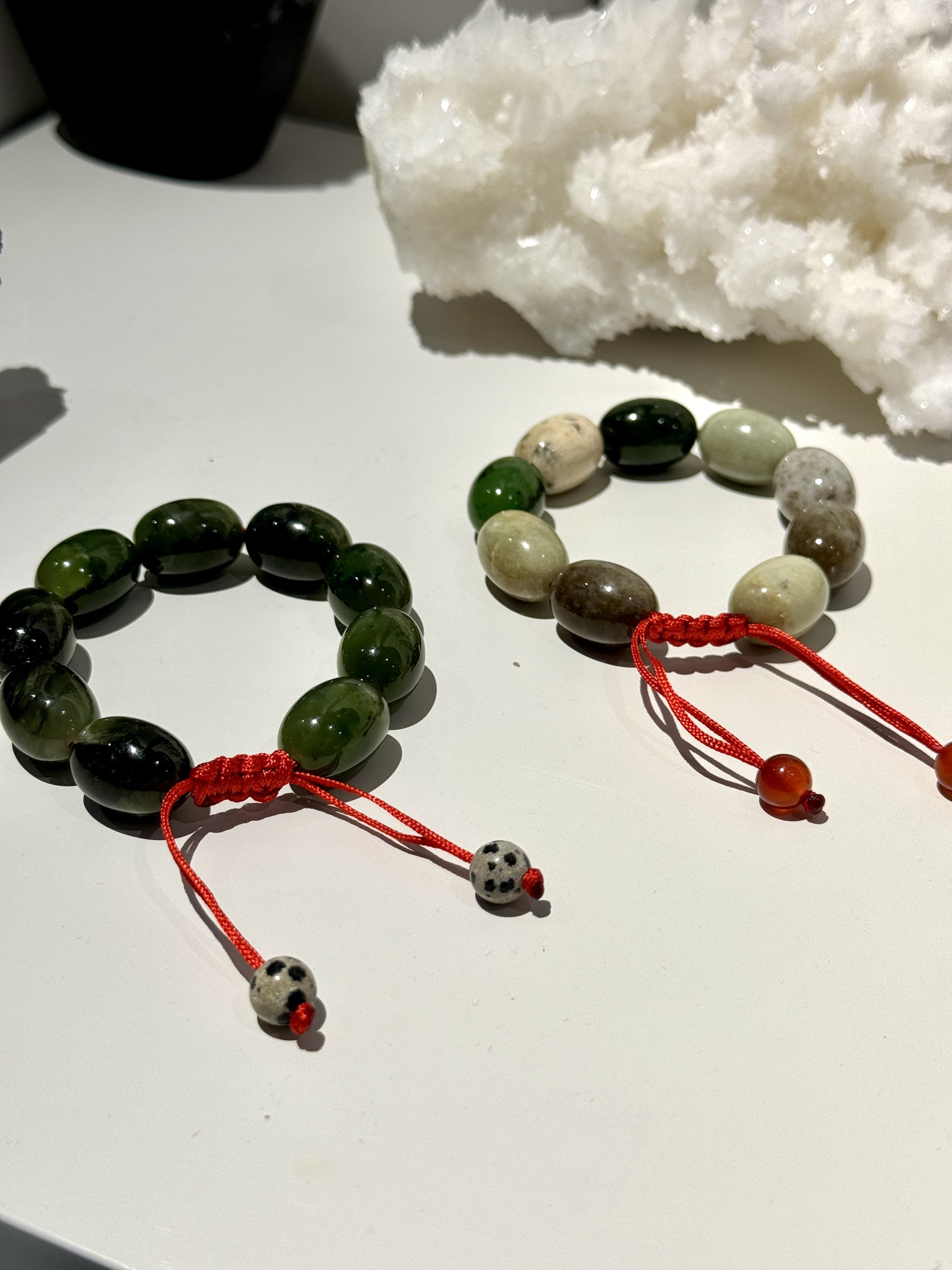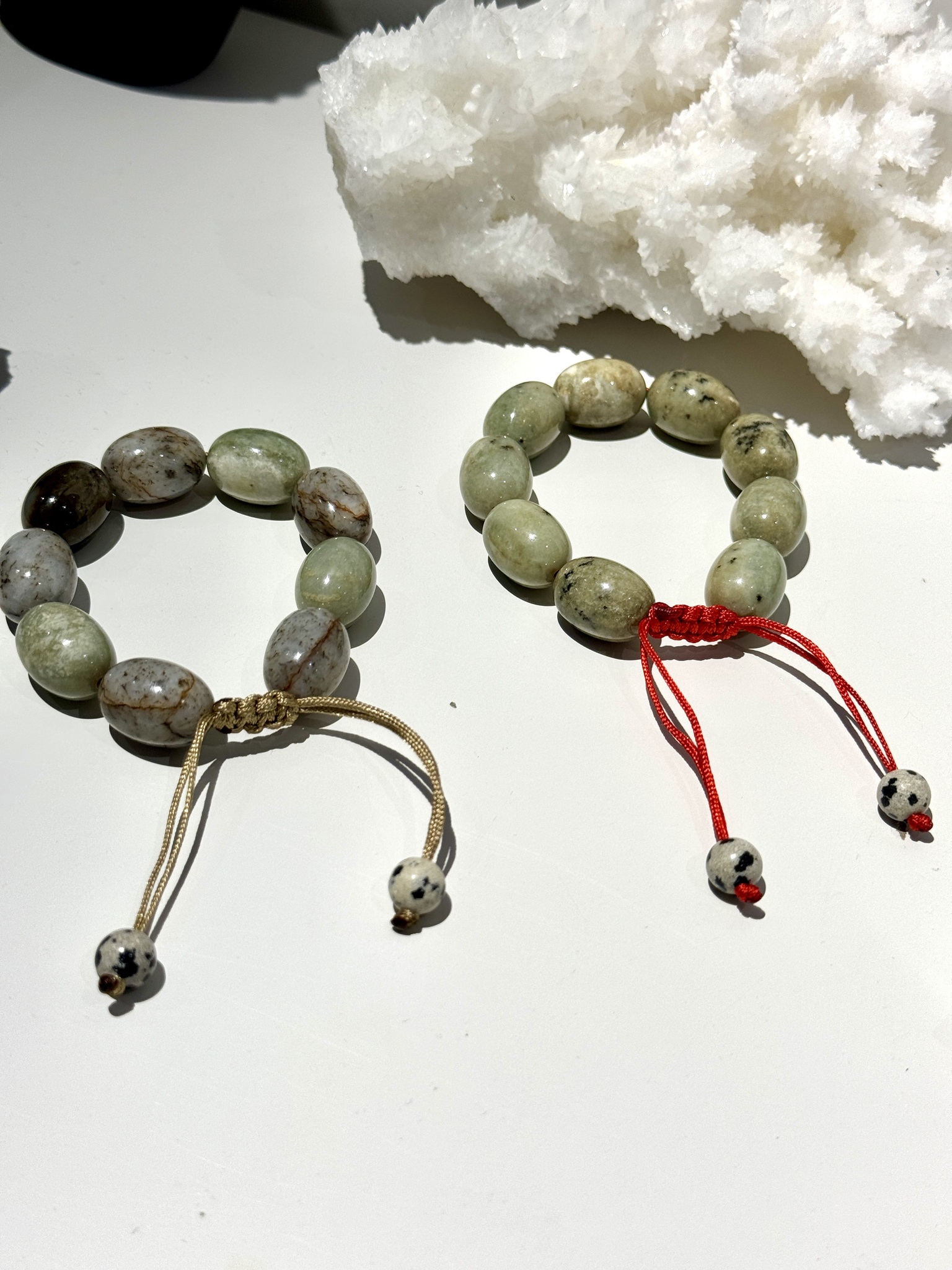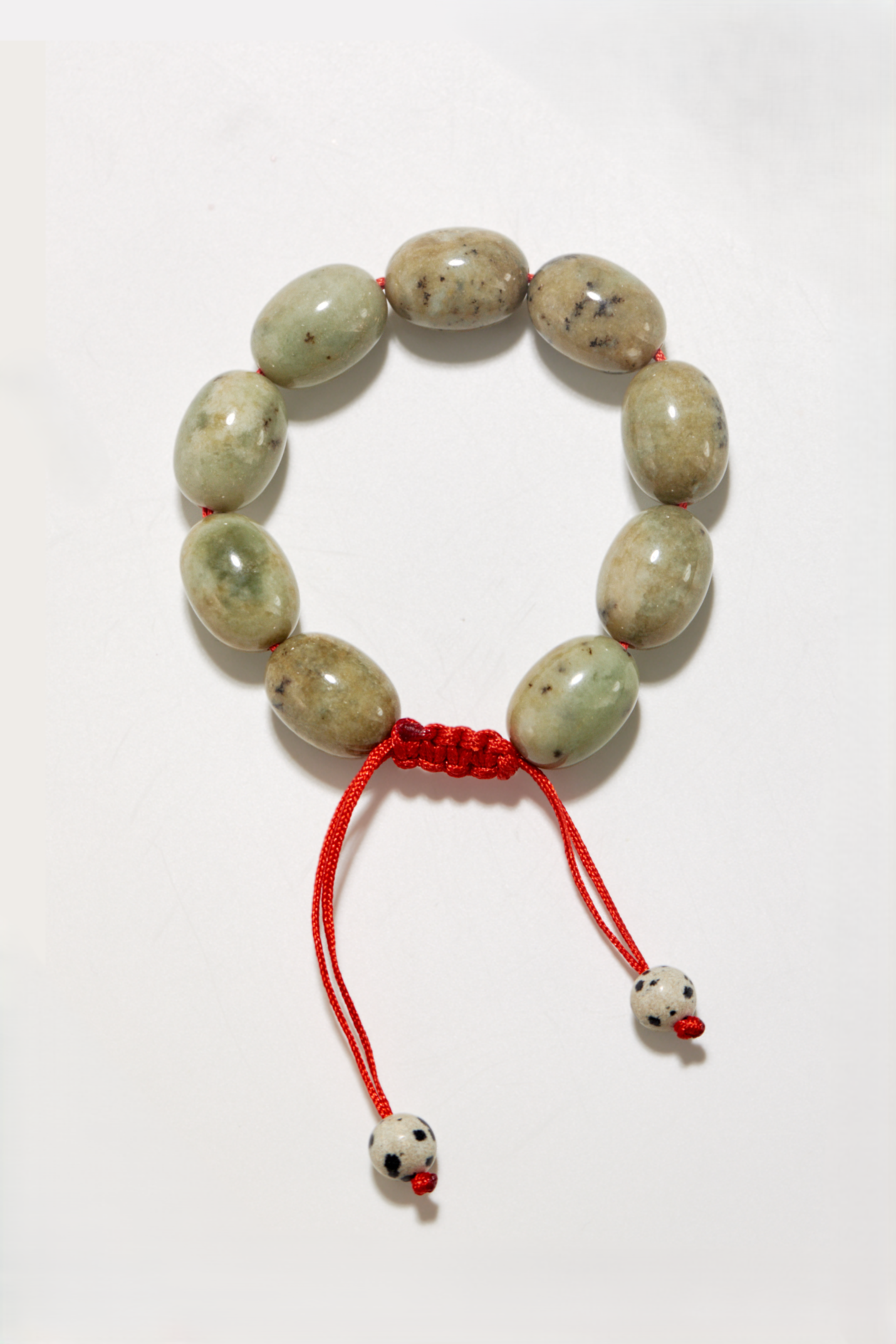 Размер браслета регулируется, идеально подойдет для запястья 15–17 см. Дополнен бусинами из радостной далматиновой яшмы.