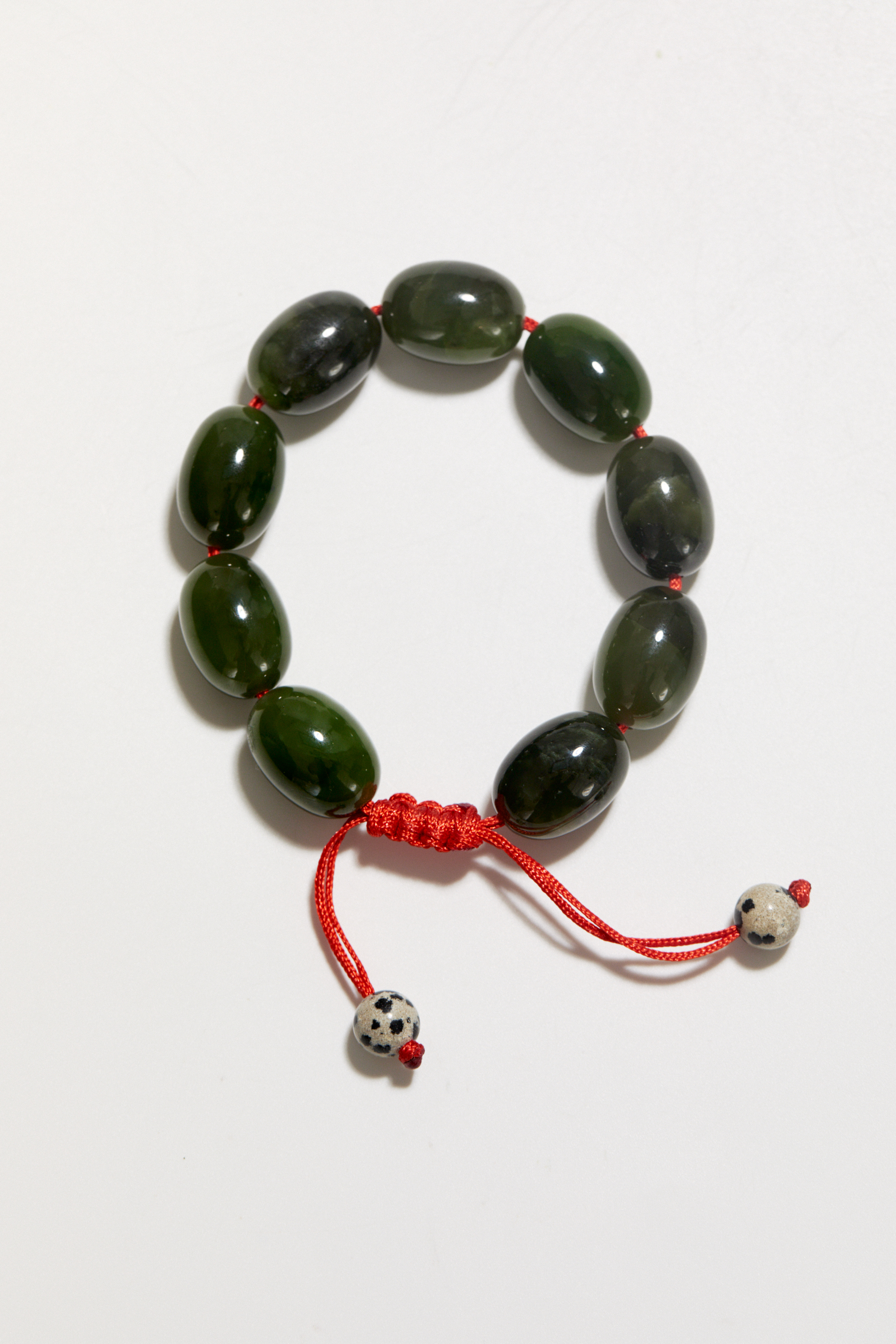 Браслет из крупного гладкого нефрита эталонного зеленого цвета. Считается, что нефрит приносит изобилие, удачу и процветание. А браслет из этого минерала станет не только заметным аксессуаром, но и напоминанием о том, что вселенная богата, изобильна и щедра.